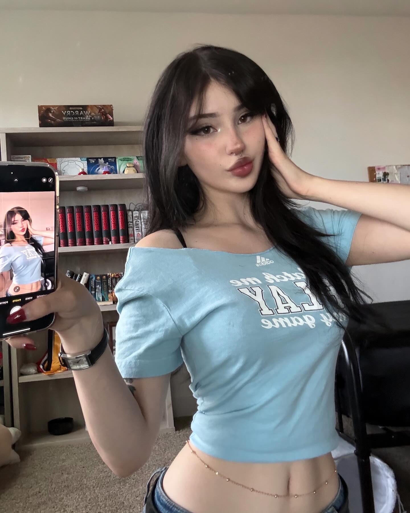 Её лента — это пространство настроений, тела и эстетики. Контрастный свет, продуманные ракурсы и уверенная пластика подчёркивают линии фигуры, создавая ощущение интимной близости без откровенности. Nickole умеет быть сексуальной через уверенность в себе: в том, как она стоит, как сидит, как позволяет камере задержаться на секунду дольше. Каждый кадр наполнен спокойным напряжением и притяжением.