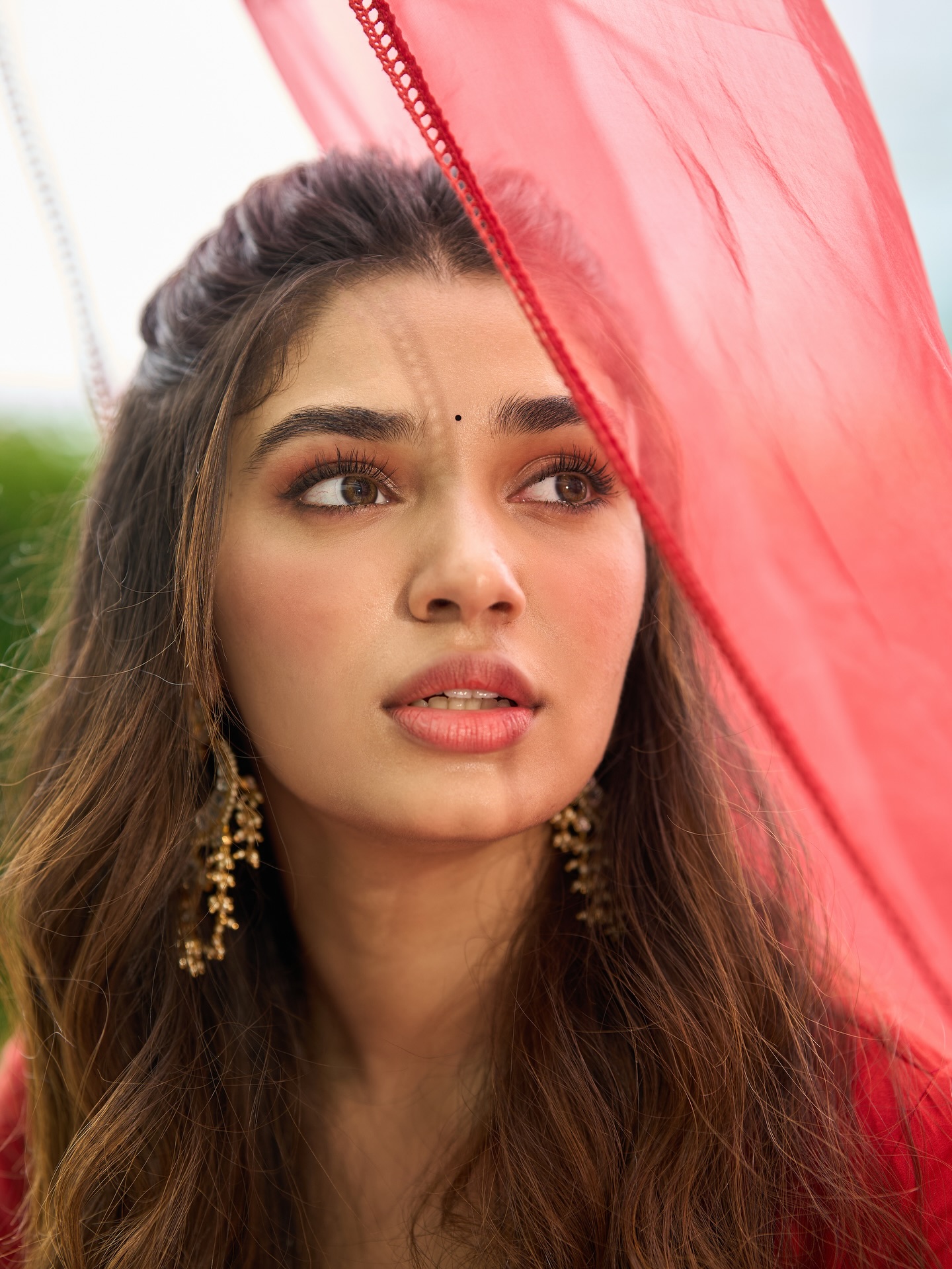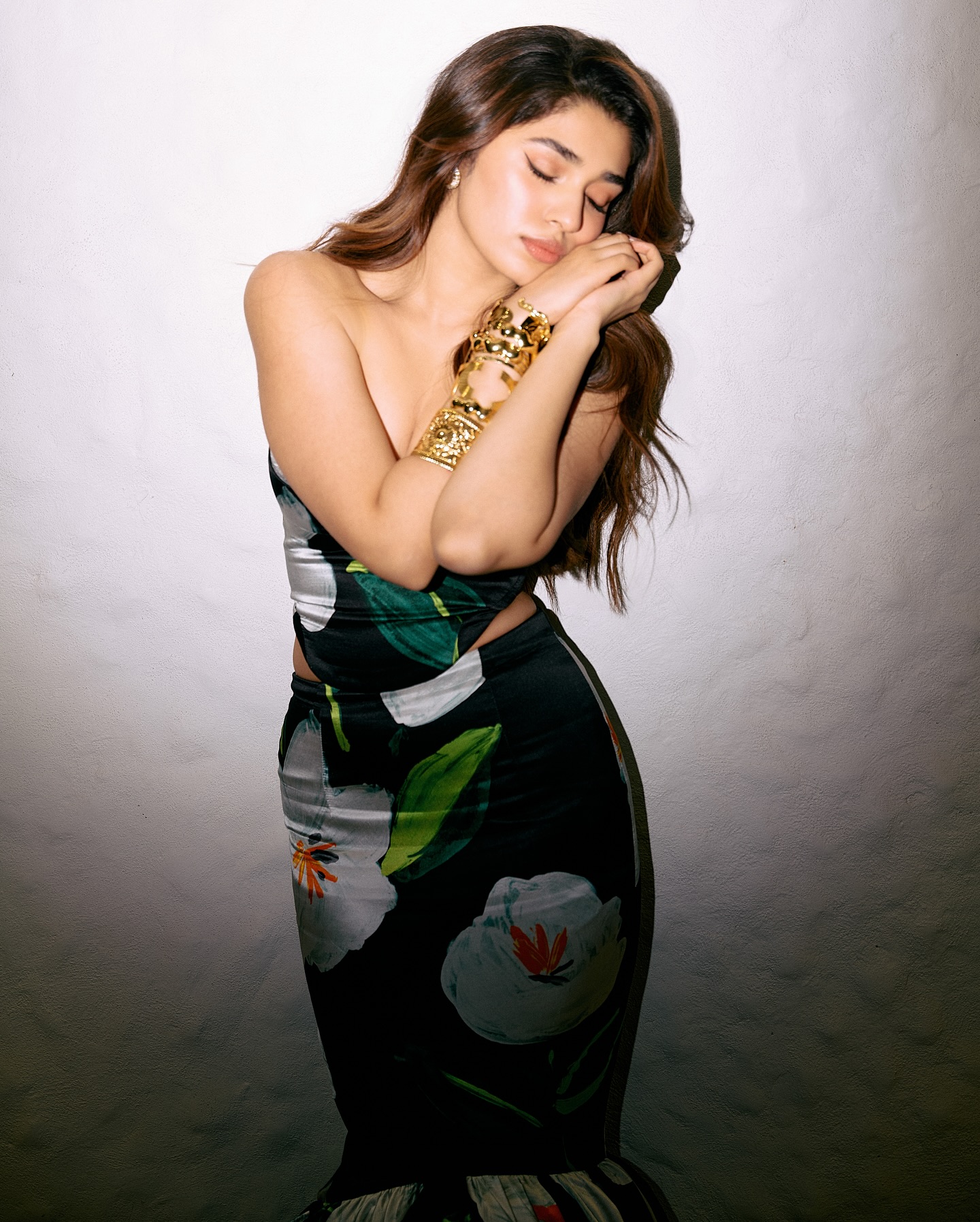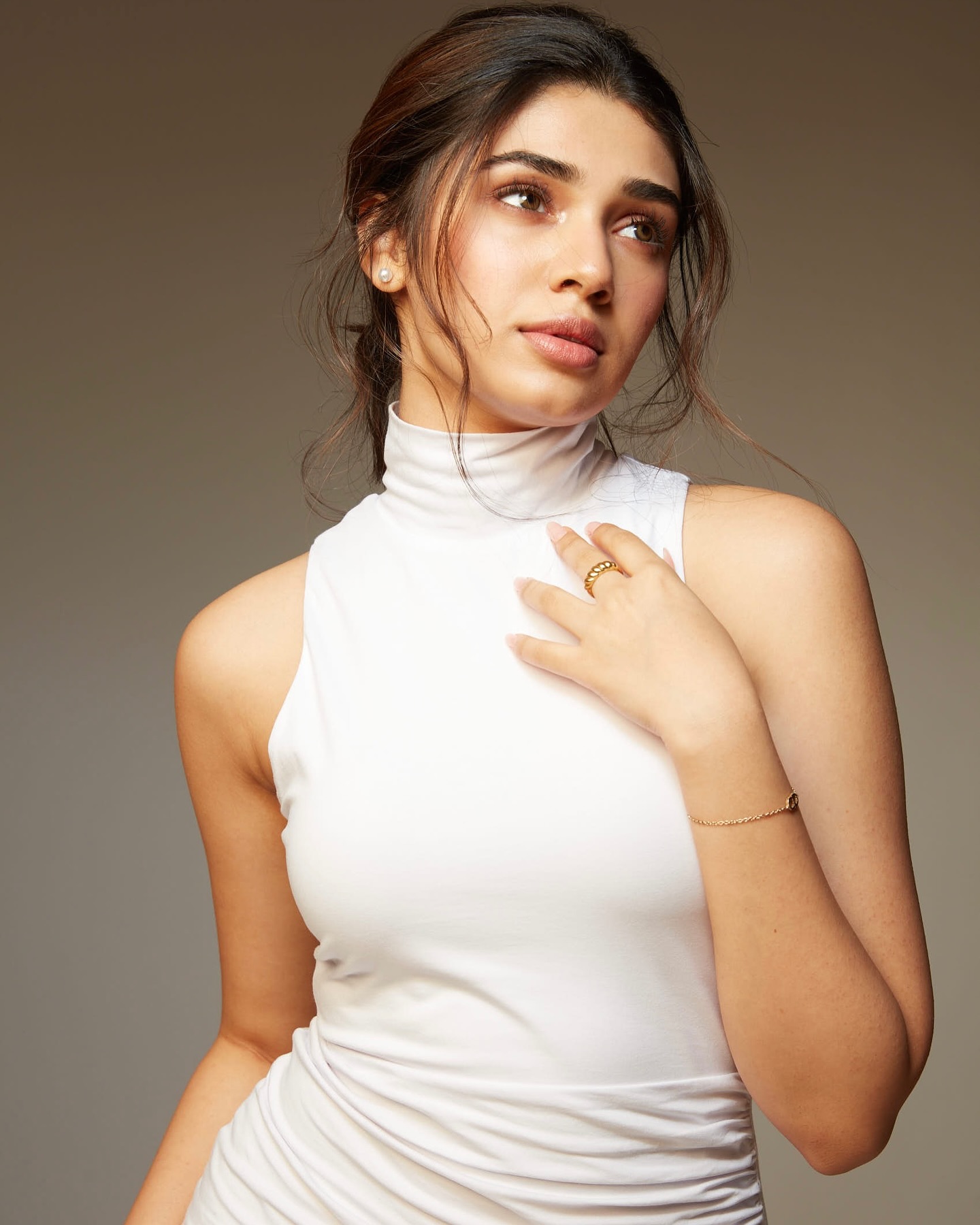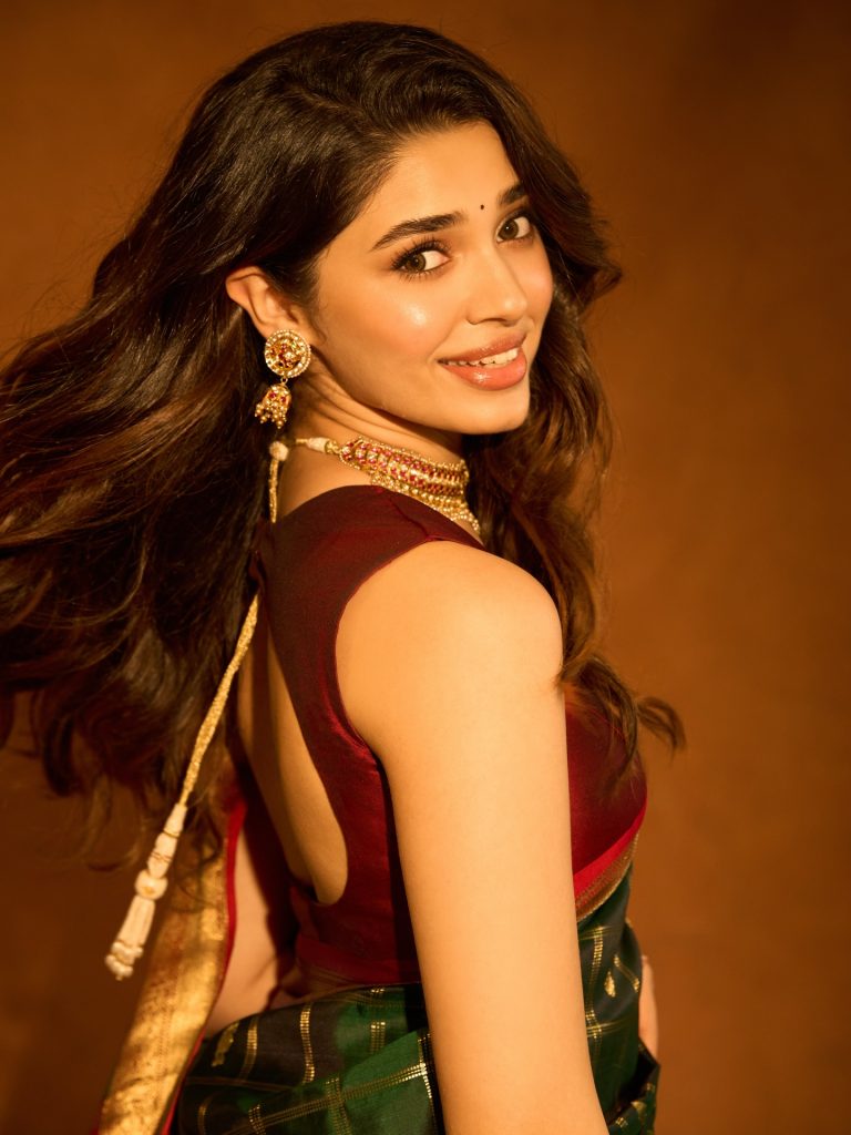 Krithi Shetty умеет балансировать между нежностью и внутренней силой. В одном кадре она кажется мягкой, почти мечтательной, в другом — собранной, уверенной и притягательно недосягаемой. Этот контраст создаёт многослойный образ, который одновременно волнует и вдохновляет. Она оставляет пространство для фантазии, не раскрывая себя полностью, и именно эта недосказанность делает её особенно манящей.