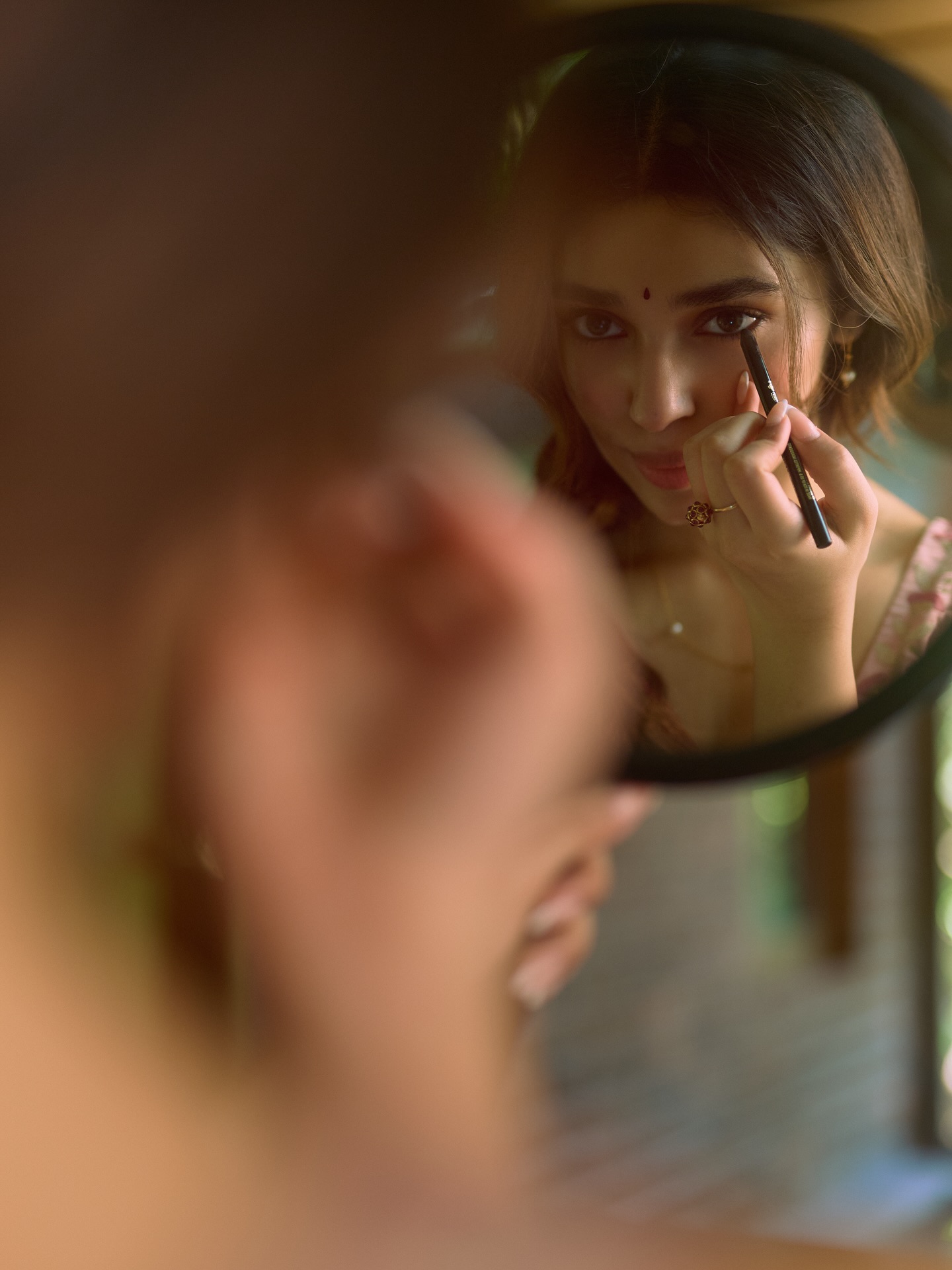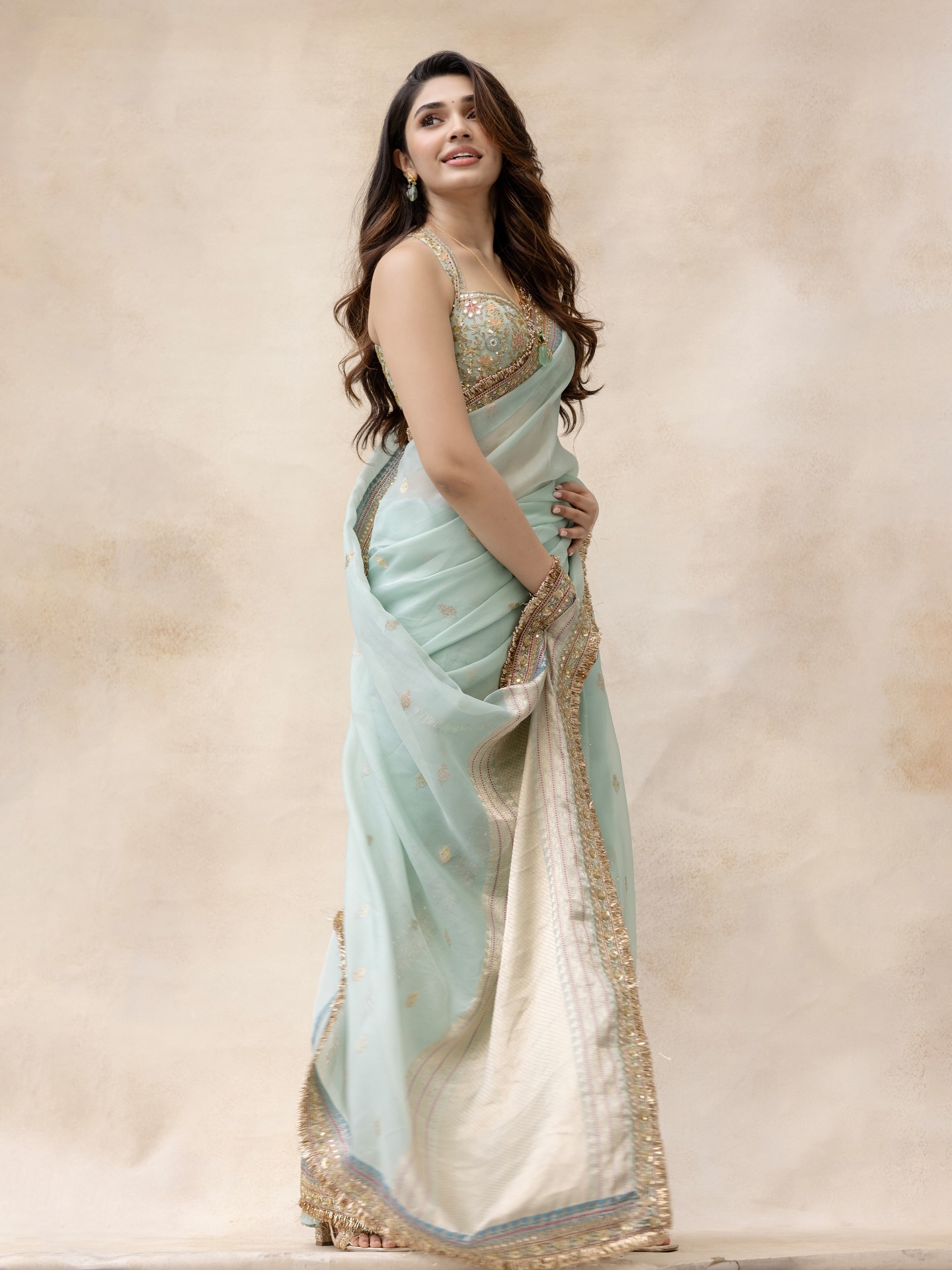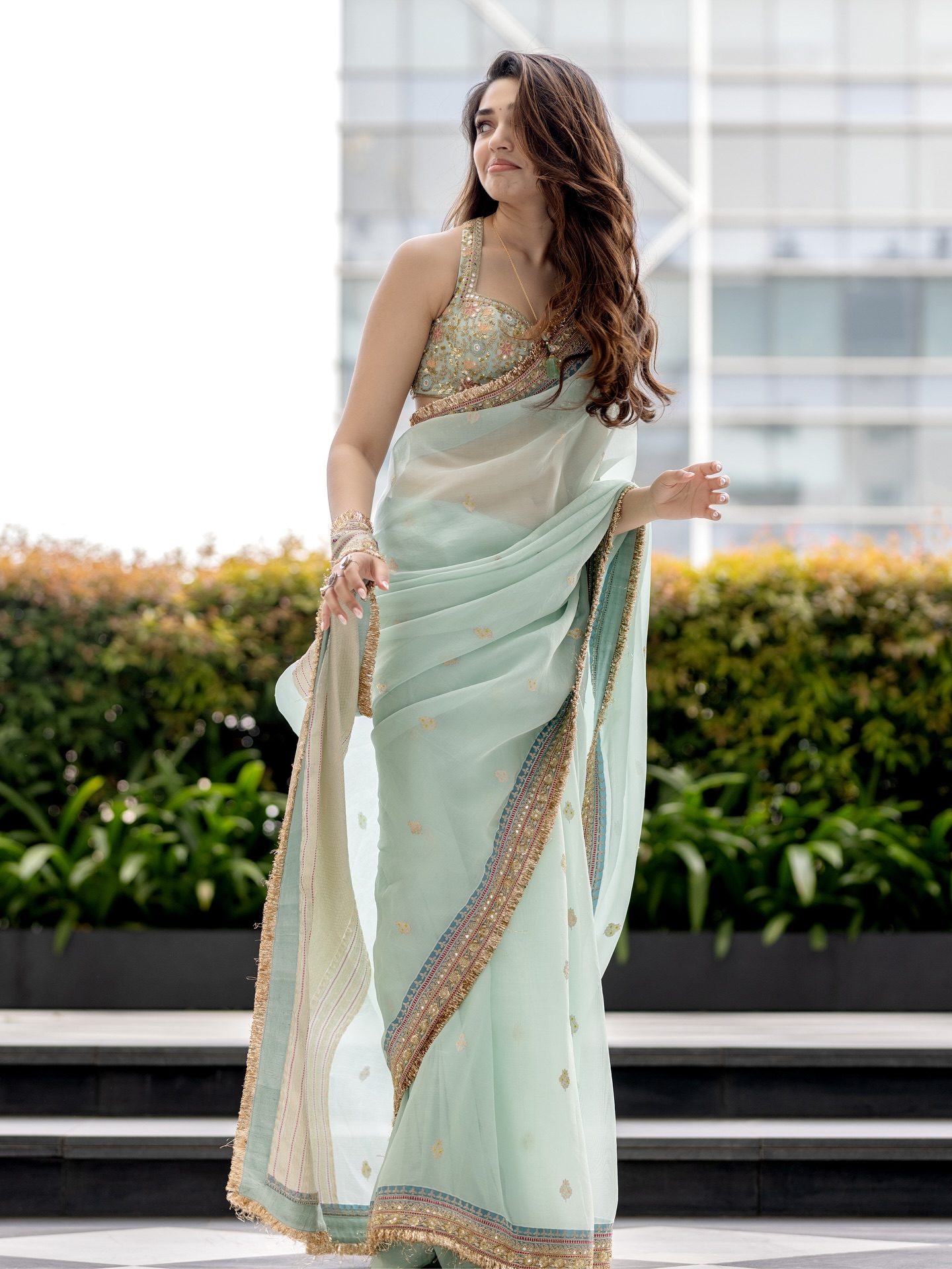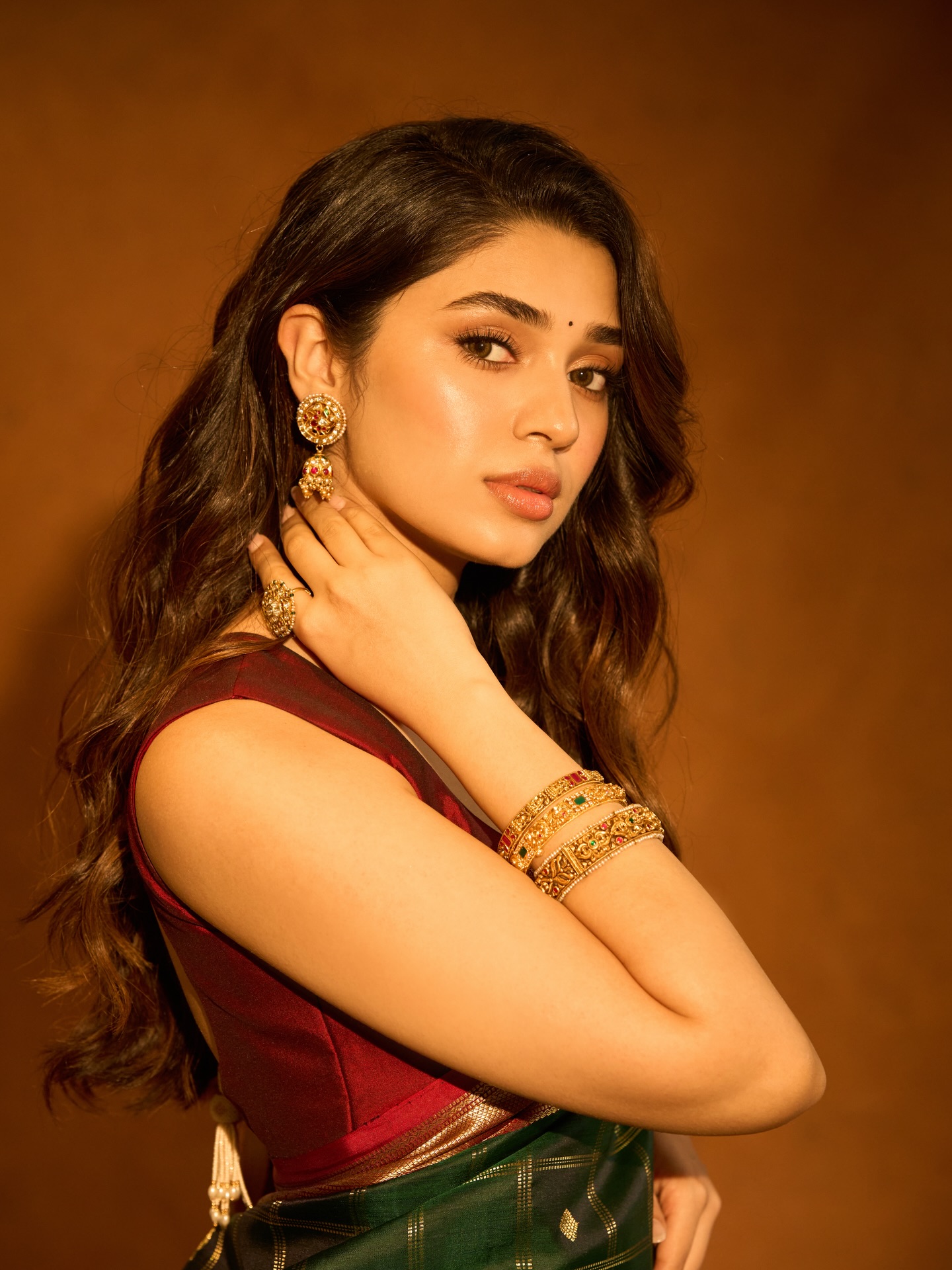 Krithi Shetty умеет балансировать между нежностью и внутренней силой. В одном кадре она кажется мягкой, почти мечтательной, в другом — собранной, уверенной и притягательно недосягаемой. Этот контраст создаёт многослойный образ, который одновременно волнует и вдохновляет. Она оставляет пространство для фантазии, не раскрывая себя полностью, и именно эта недосказанность делает её особенно манящей.