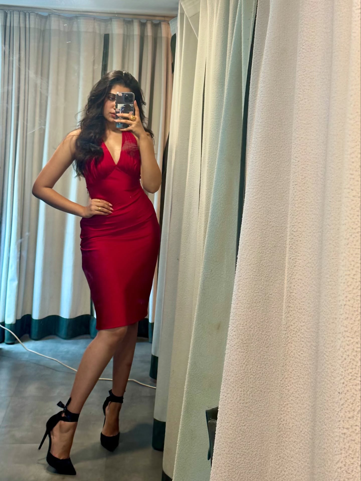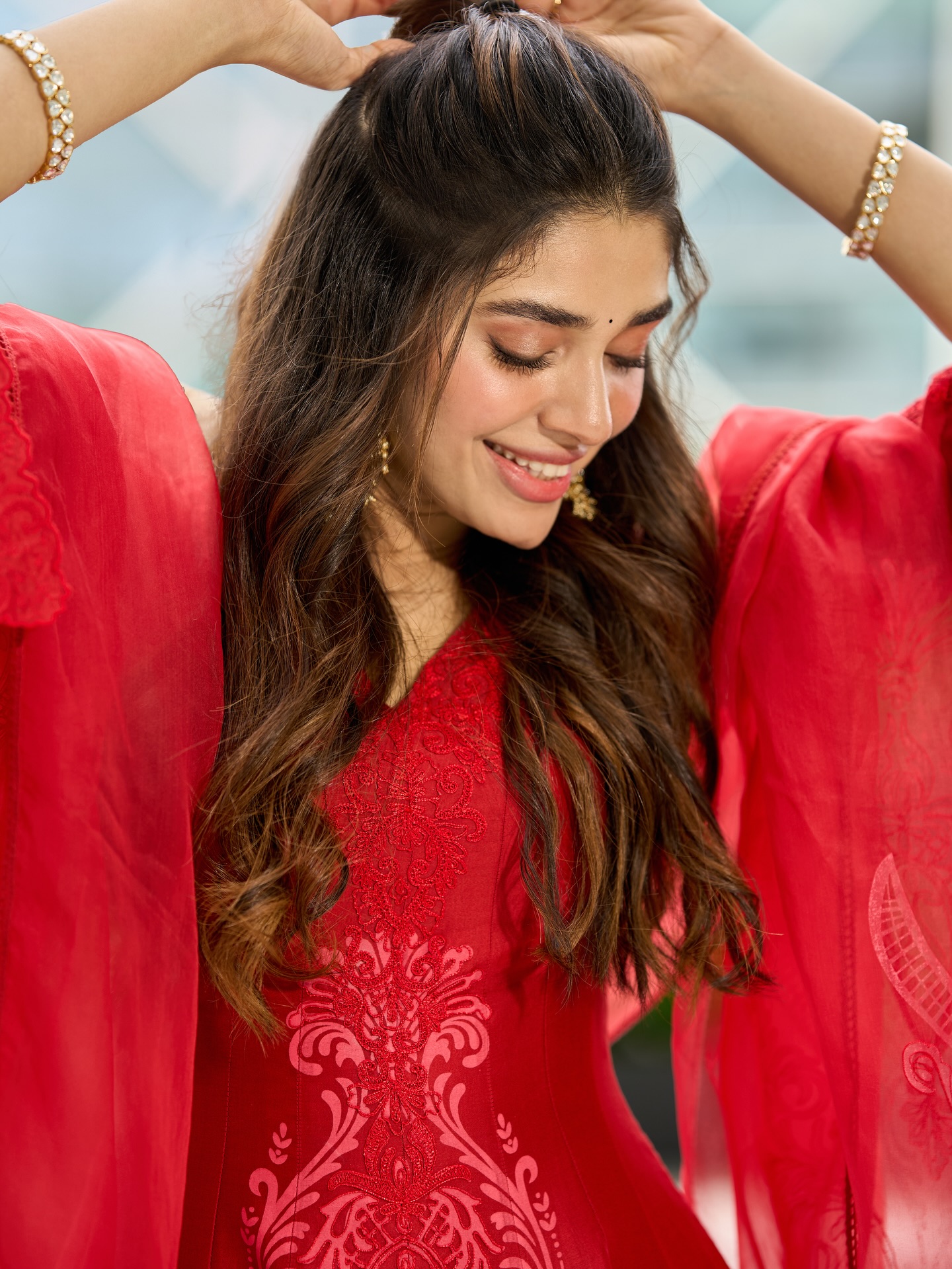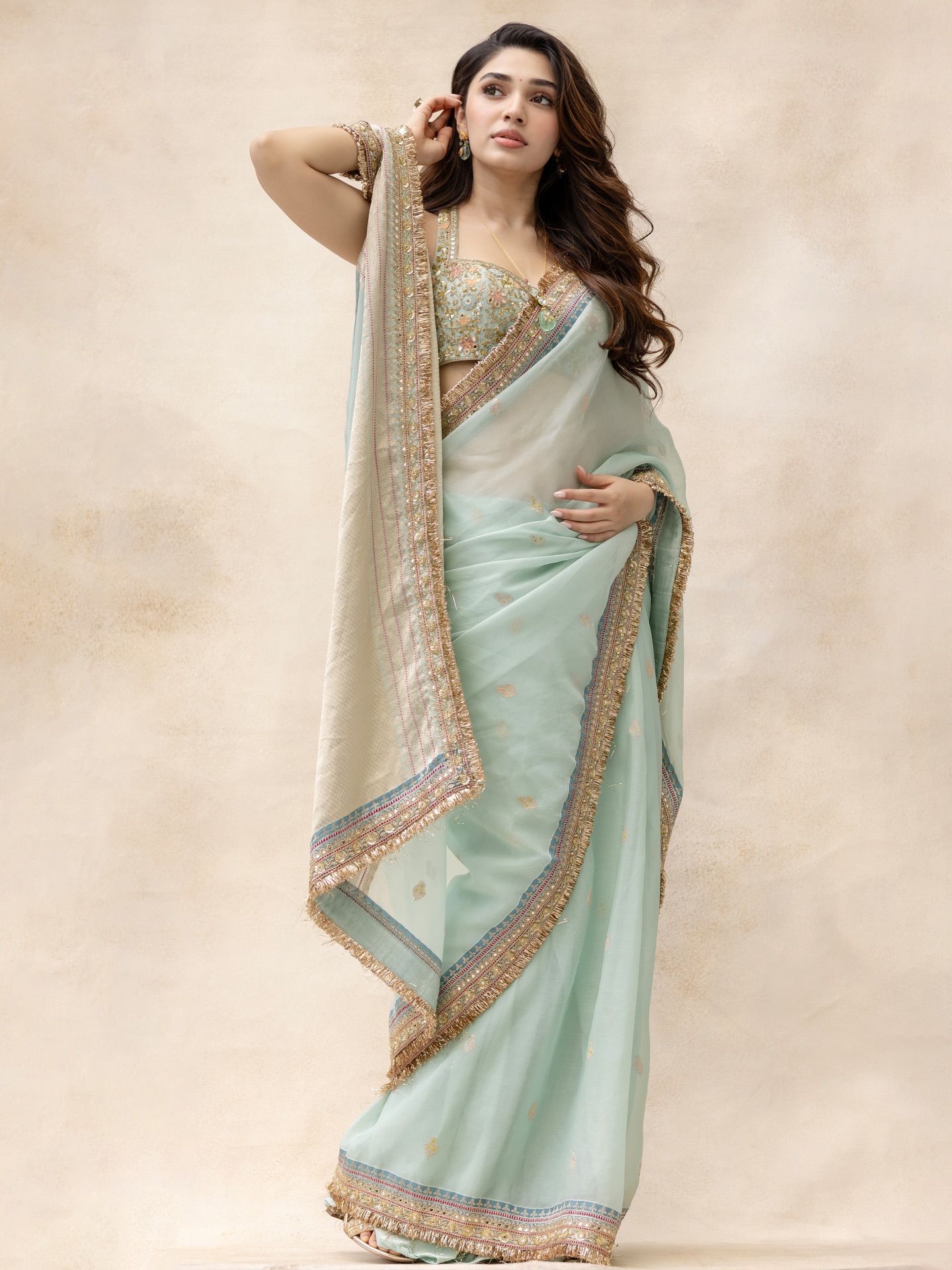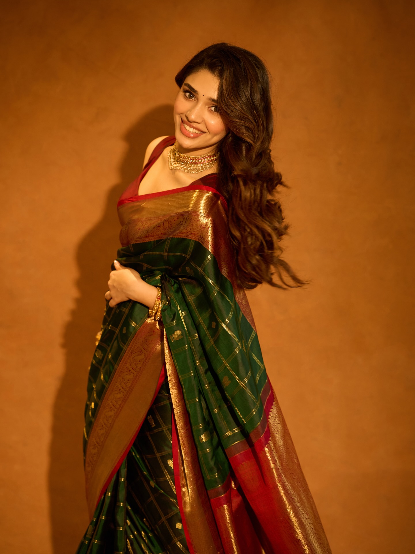 Krithi Shetty умеет балансировать между нежностью и внутренней силой. В одном кадре она кажется мягкой, почти мечтательной, в другом — собранной, уверенной и притягательно недосягаемой. Этот контраст создаёт многослойный образ, который одновременно волнует и вдохновляет. Она оставляет пространство для фантазии, не раскрывая себя полностью, и именно эта недосказанность делает её особенно манящей.