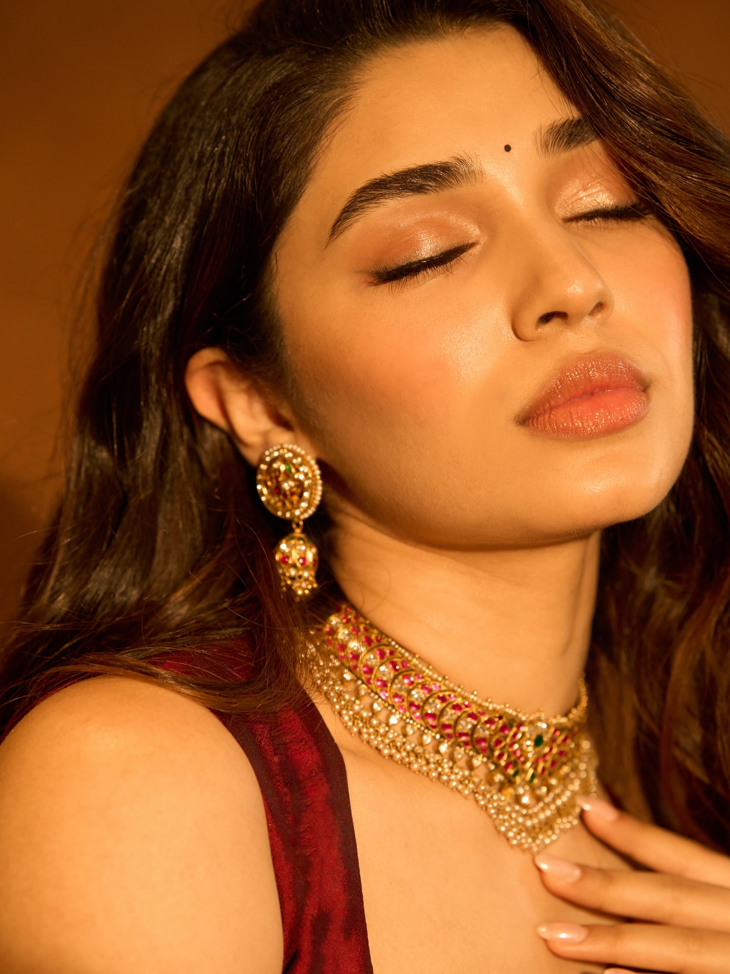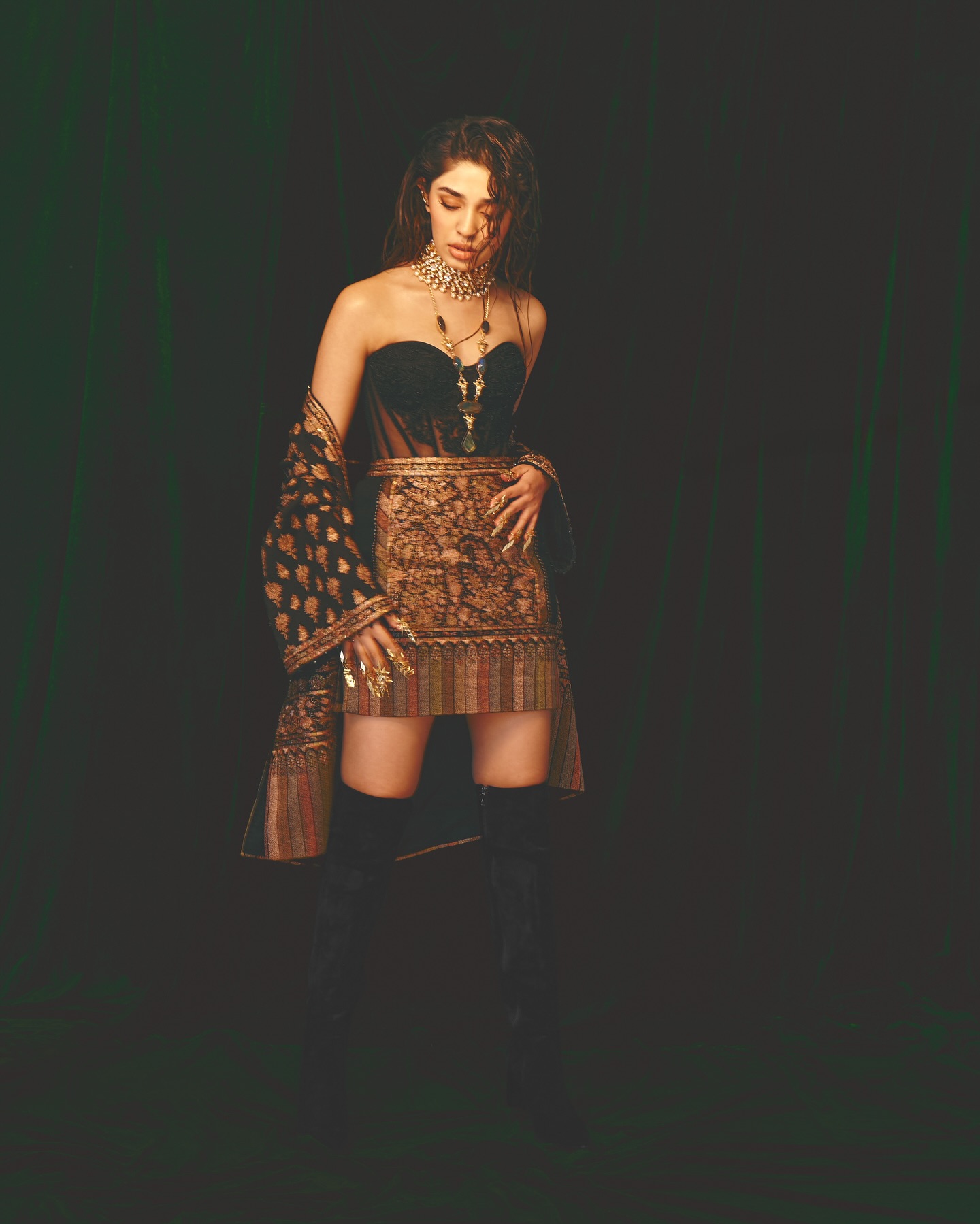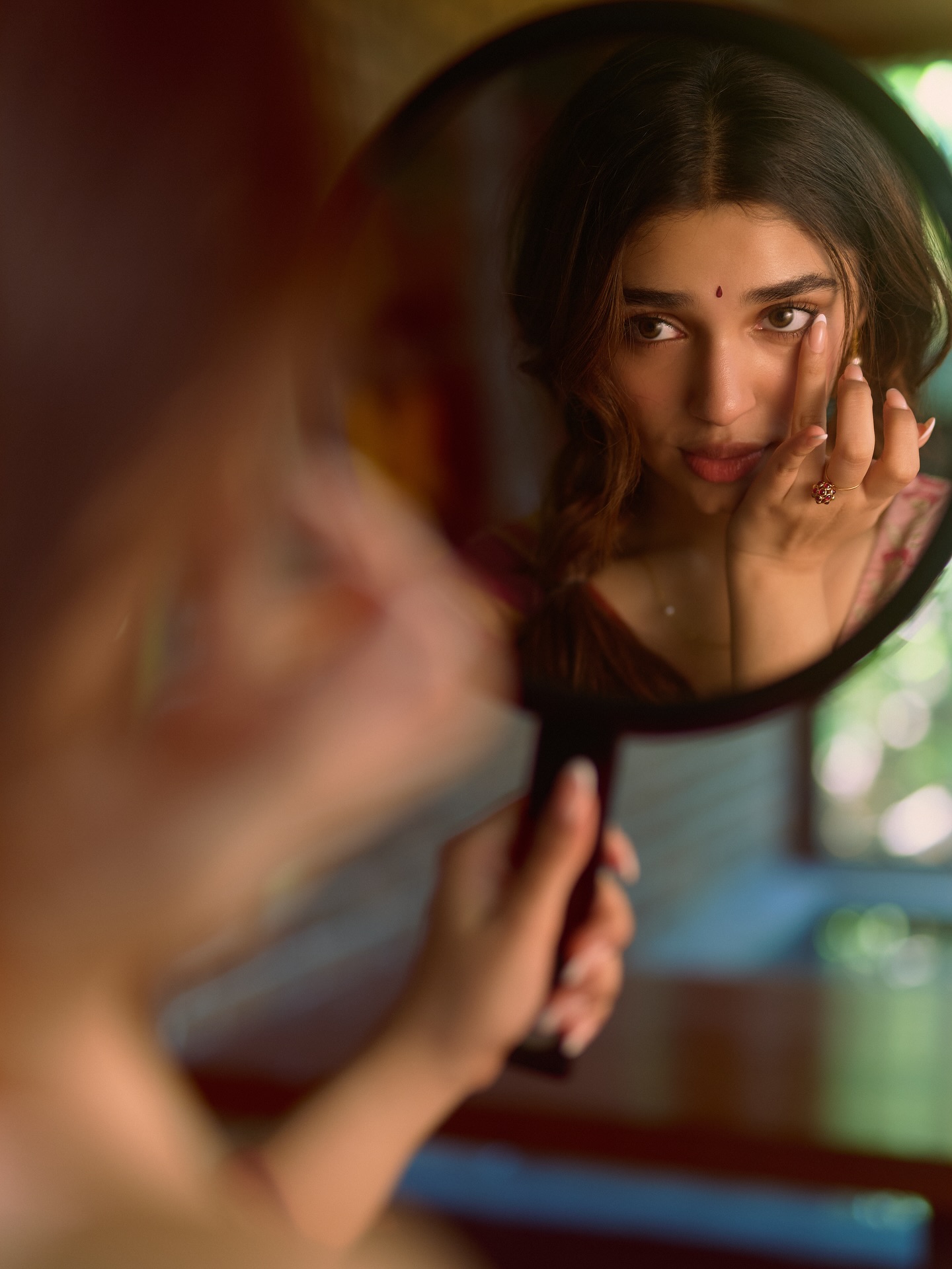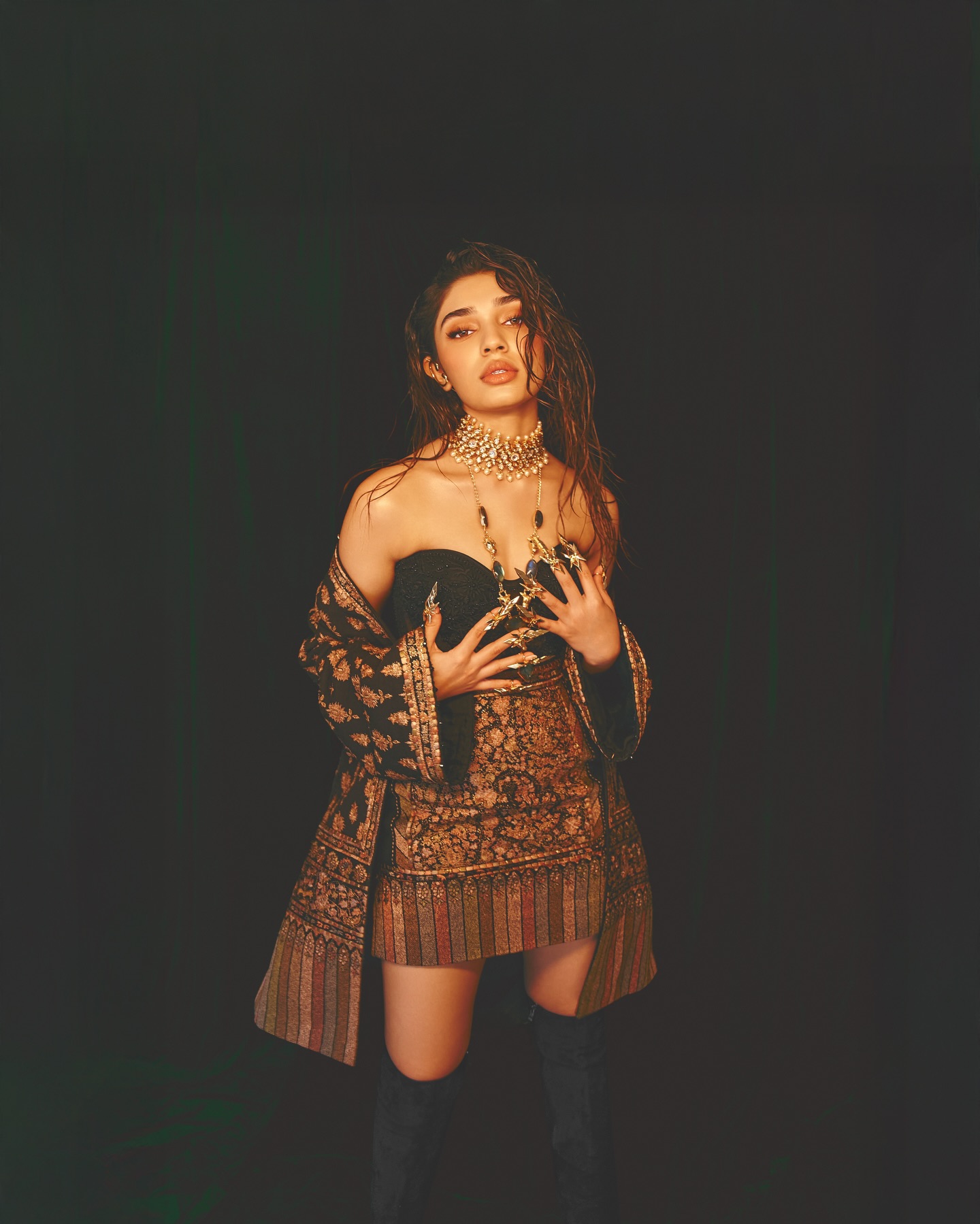 Krithi Shetty умеет балансировать между нежностью и внутренней силой. В одном кадре она кажется мягкой, почти мечтательной, в другом — собранной, уверенной и притягательно недосягаемой. Этот контраст создаёт многослойный образ, который одновременно волнует и вдохновляет. Она оставляет пространство для фантазии, не раскрывая себя полностью, и именно эта недосказанность делает её особенно манящей.